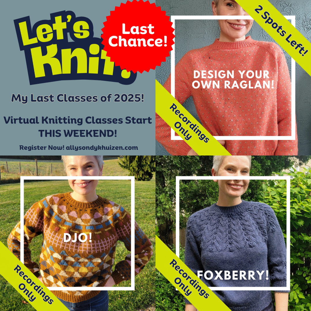 Allyson Dykhuizen 8/1/25 Allyson Dykhuizen 8/1/25 Registration Opens for Virtual Sweater Classes on November 4th! Read More