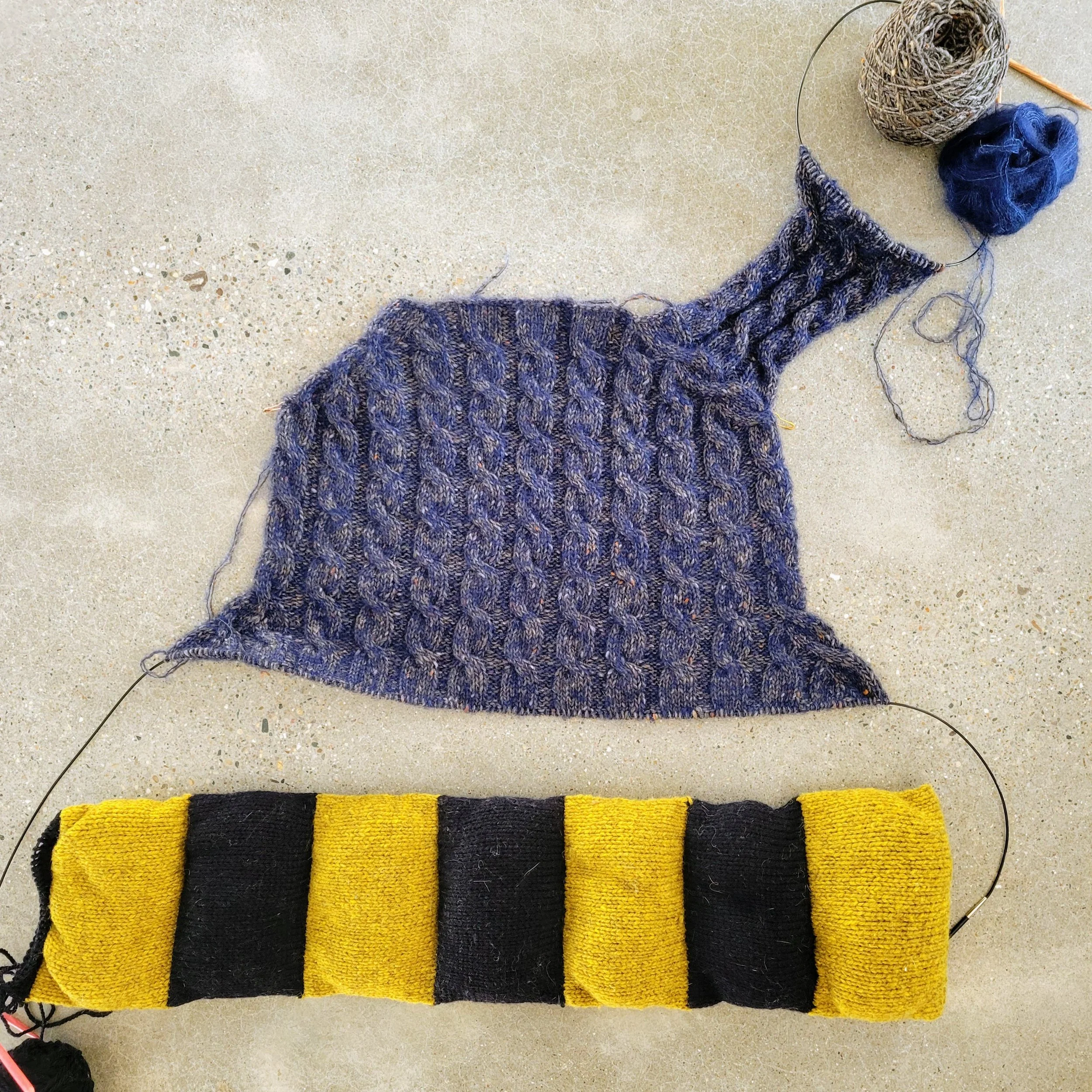 This is what my WIP pile looked like 2 weeks ago! I got a good start on my Vest No 8, and I was Puff Scarfing along.