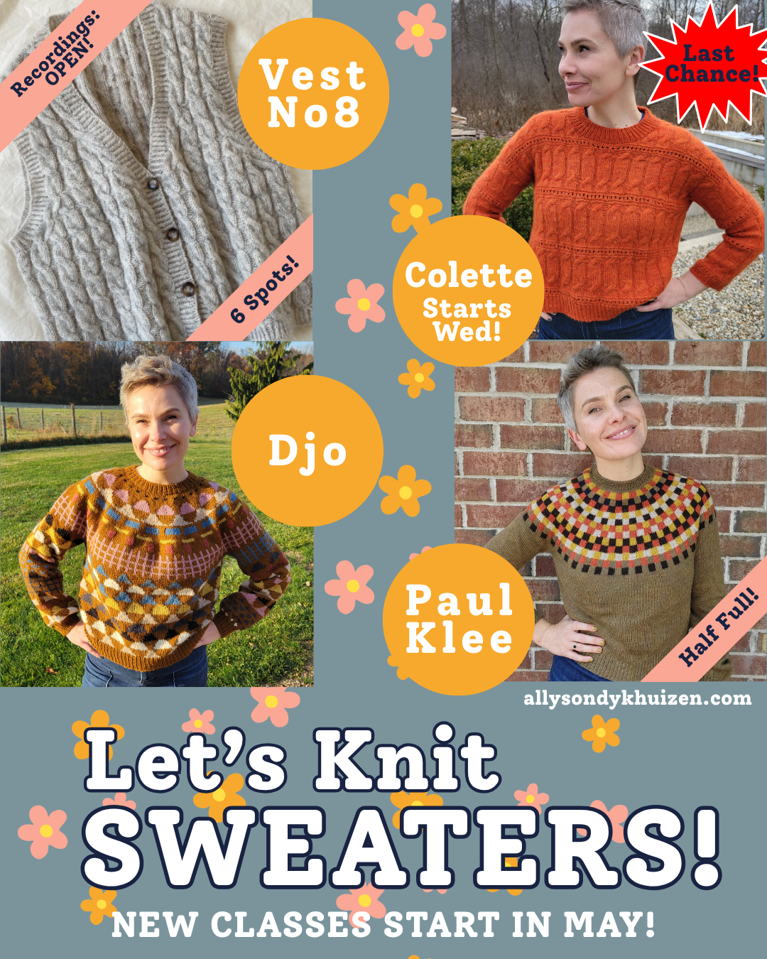 I’ve got a class registration update below and wanted to mention I decided to cancel the Design Your Own Fair Isle Sweater I had scheduled for Mondays in May. I had a few things come up (more soon!), and I didn’t want to push another session of that when I could hold off and do it again this fall.