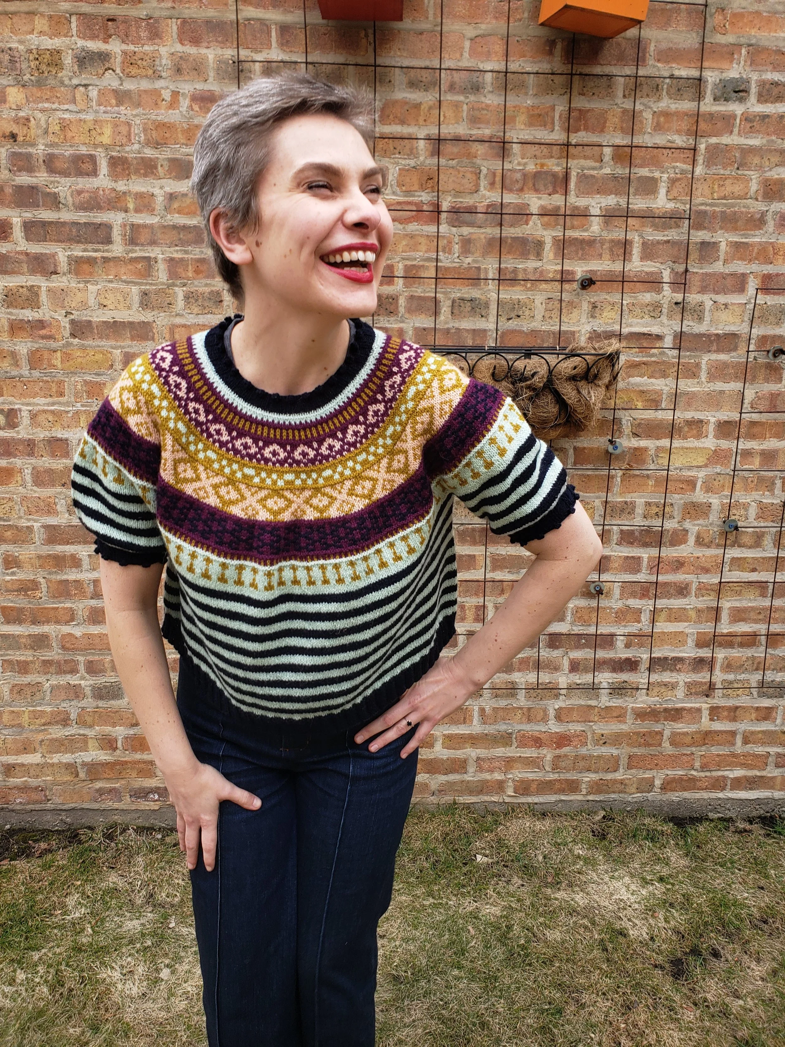 YAY! You learned to fully customize this sweater with your gauge and desired measurements! You also learned to knit perfect colorwork and all the finishing techniques! Amazing job!